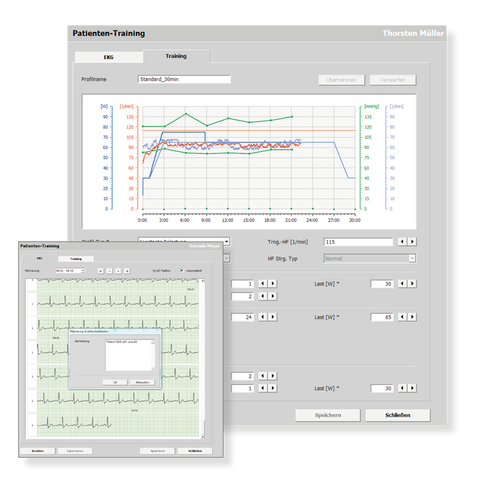 • komplette EKG-Speicherung für alle Patienten/Trainings