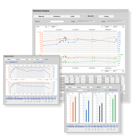 • gleichzeitige Überwachung, Trainingskontrolle und Dokumentation von bis zu 24 Patienten pro PC
